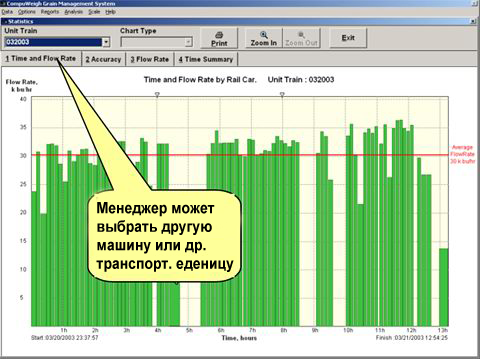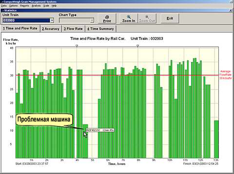 Допустим, что мы починили граничный переключатель. Менеджер может выбрать таблицу Flow Rate, и мы увидим время, потраченное на ремонт, и то, что теперь весы в норме.