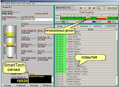 Давайте выберем Scale Events. Здесь мы увидим, что был аларм/сообщение об аварии. И весы автоматически остановились. Давайте перейдем дальше и посмотрим, что SmartTech обнаружил.